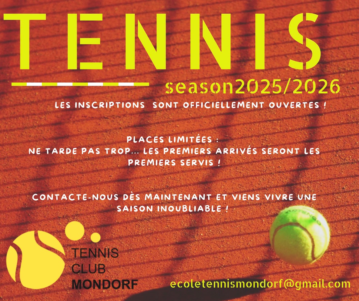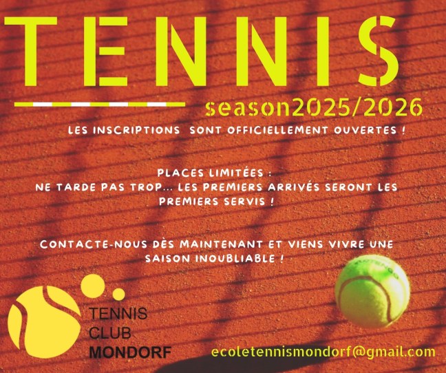 Pour obtenir un formulaire d’inscription merci d’écrire un email à : ecoletennismondorf@gmail.com