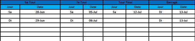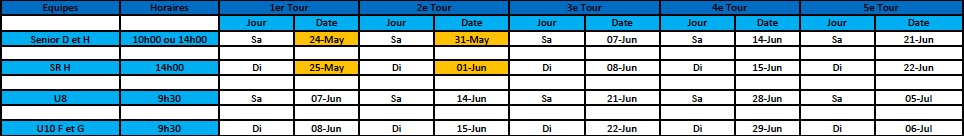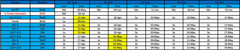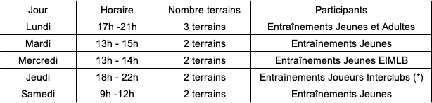 En annexe, les horaires des Entraînements et des Interclubs: